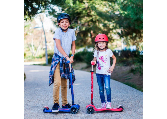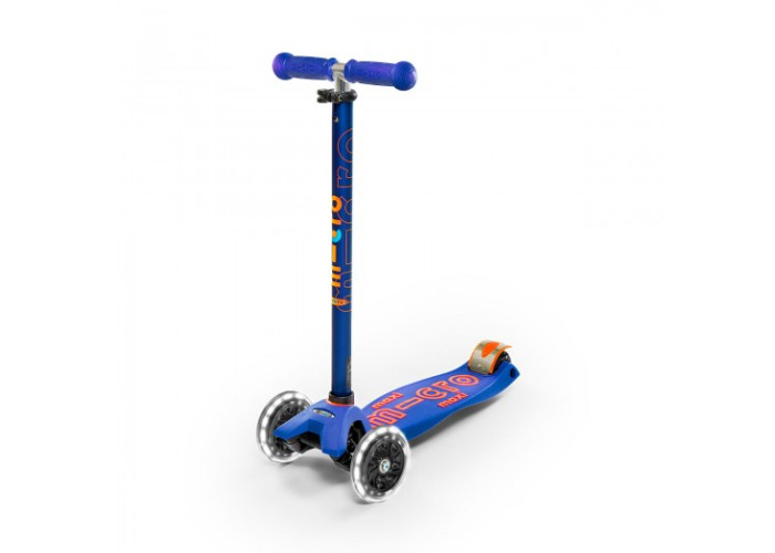 Самокат MICRO серии "MAXI DELUXE" - СИНИЙ (до 50 KG, 3-х колесный, LED)