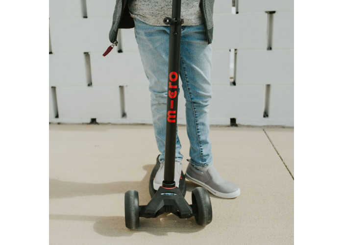 Самокат MICRO серии "MAXI PRO DELUXE" - ЧЕРНЫЙ/КРАСНЫЙ (до 50 кг, 3-х колесный)