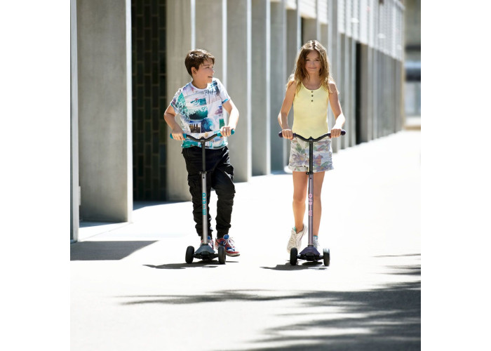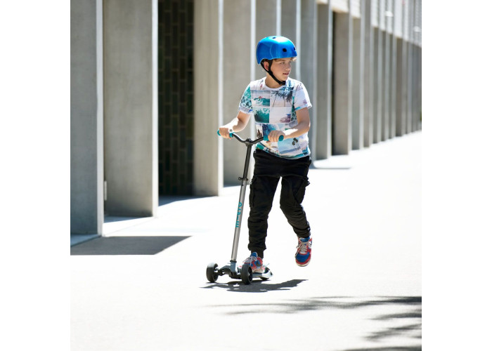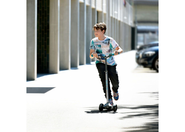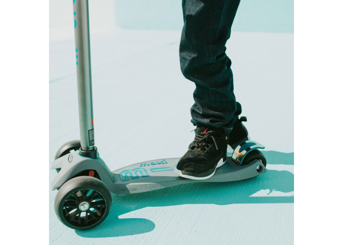 Самокат MICRO серии "MAXI PRO DELUXE" - СЕРЫЙ И АКВА (до 50 кг, 3-х колесный)