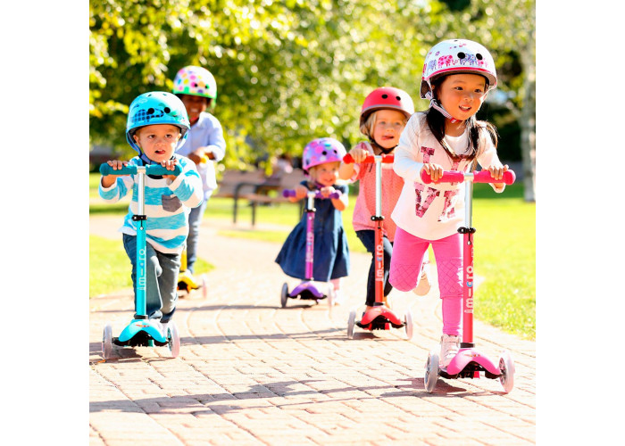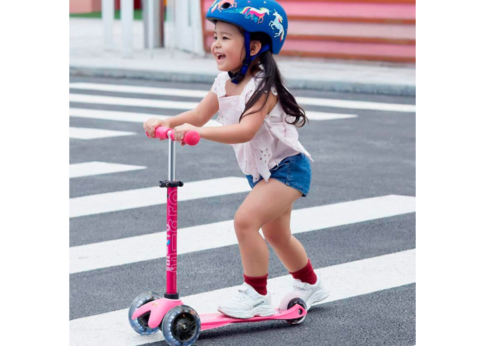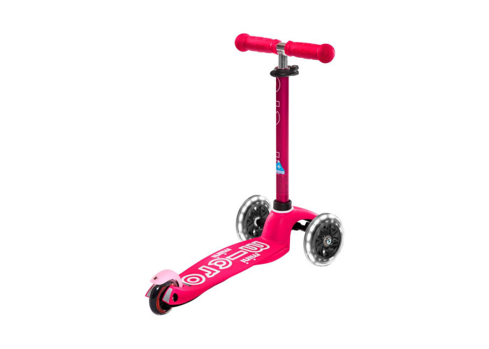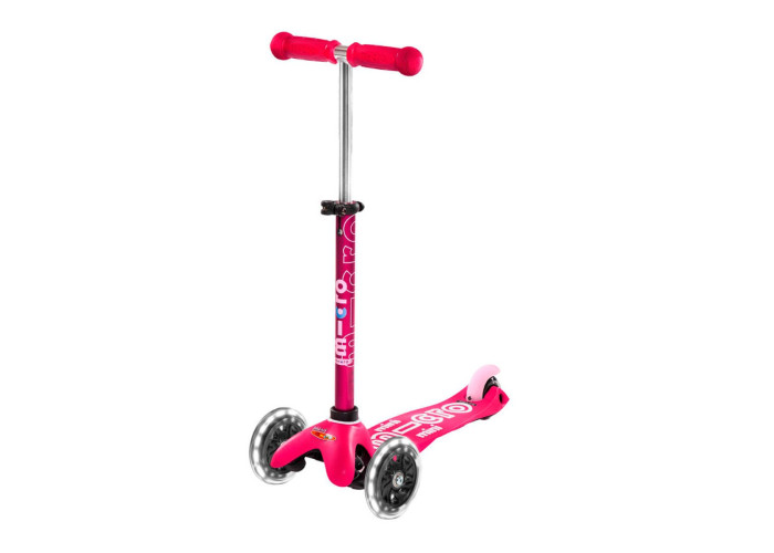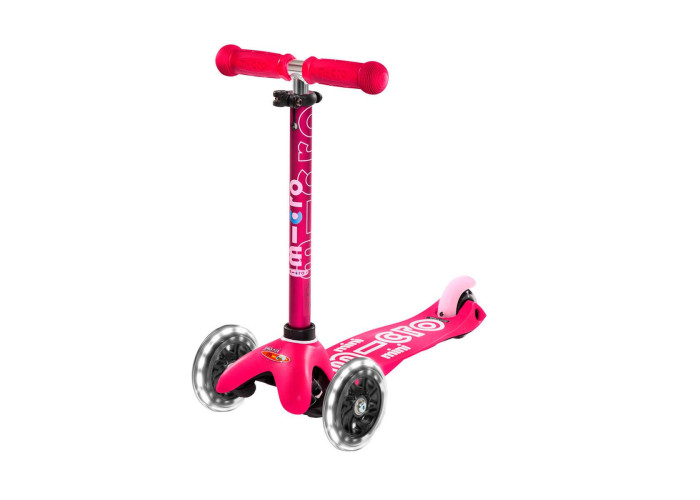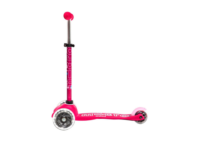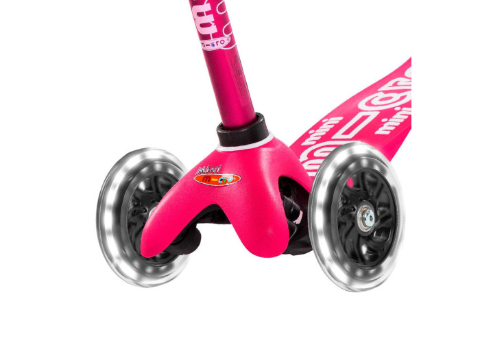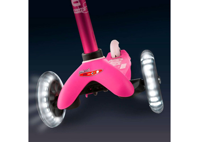 Самокат MICRO серии "MINI DELUXE LED" – РОЗОВЫЙ (до 50 KG, 3-х колесный, свет)