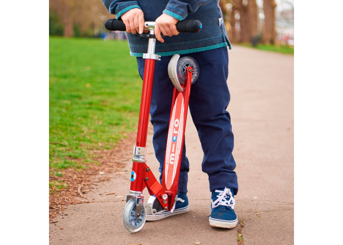 Самокат MICRO серии "SPRITE" – КРАСНЫЙ С ПОЛОСАМИ (до 100 KG, 2-х колесный)