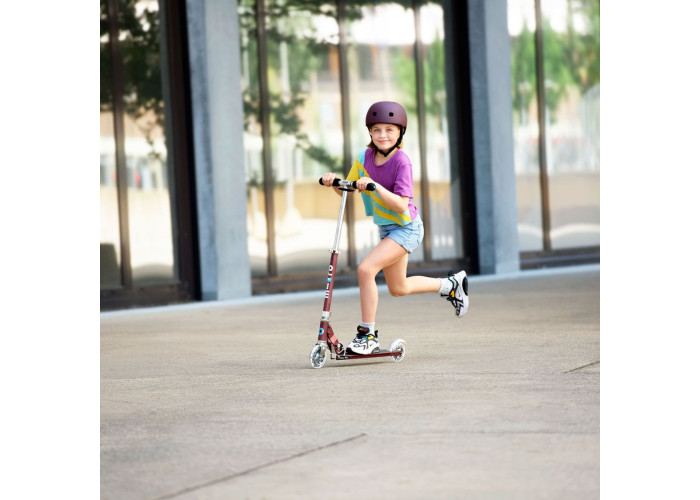 Самокат MICRO серии "SPRITE LED" – ОСЕННИЙ КРАСНЫЙ (до 100 KG, 2-х колесный, свет)