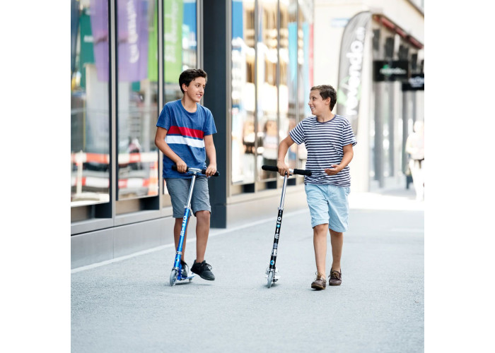 Самокат MICRO серии "SPRITE SPECIAL EDITION" – СИНИЙ (дека в полосочку, до 100 KG, 2-х колесный)