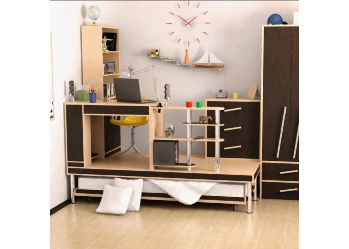 Спальное место с рабочим столом и шкафами
