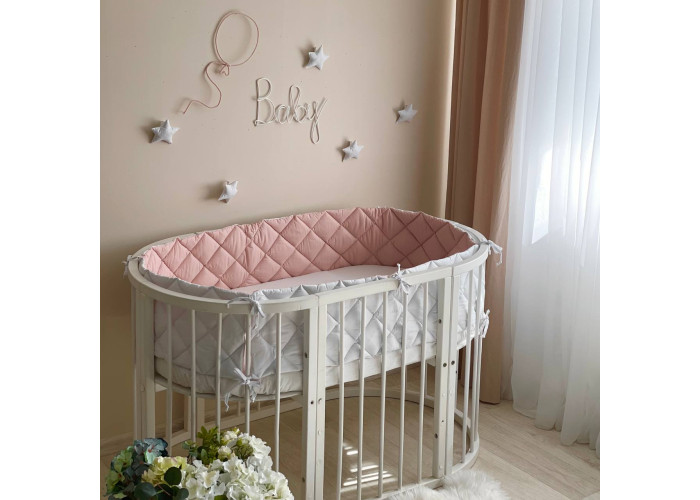 Двусторонние стеганные бортики для круглой и овальной кроватки.