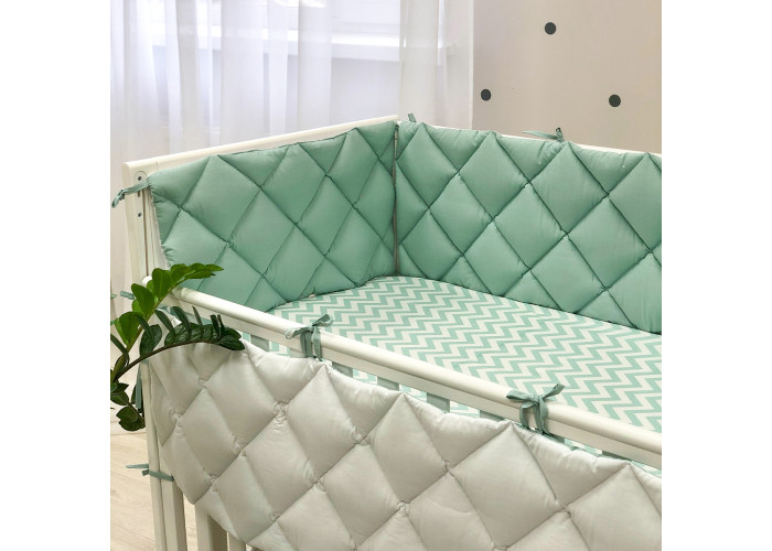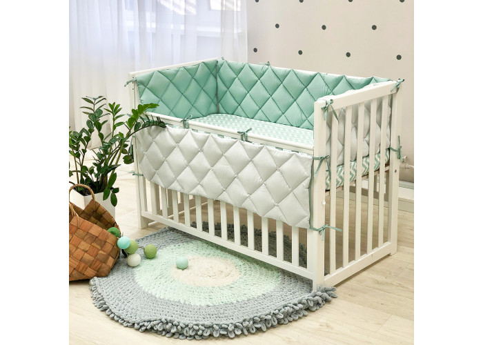 Бортики на четыре стороны кроватки.