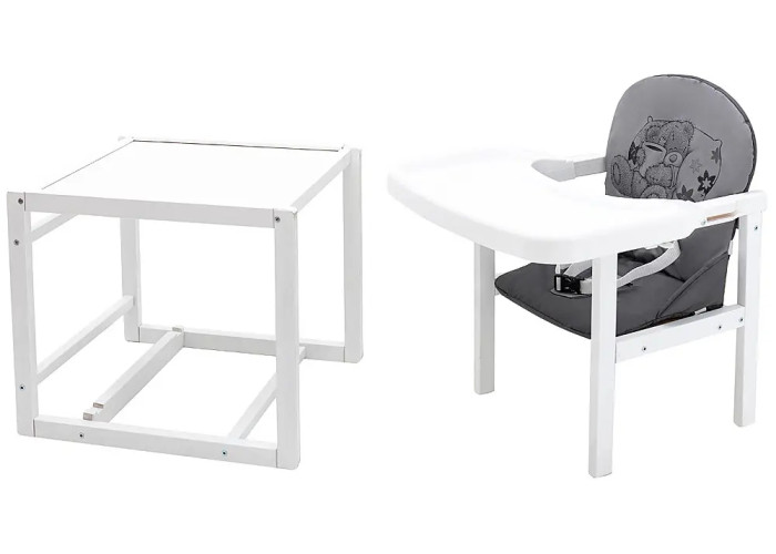 Стульчик- трансформер Babyroom Винни-240 белый пластиковая столешница серый-графит (мишка с чашкой)