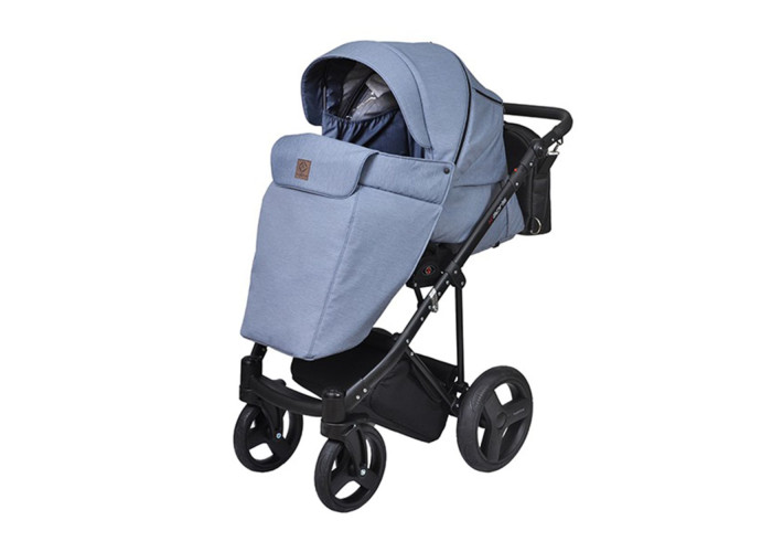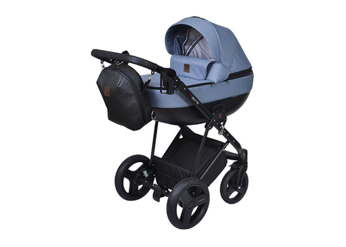 - Цельнолитая просторная пластиковая коляска, обшитая высококачественной тканью;