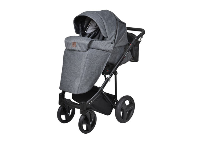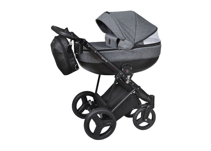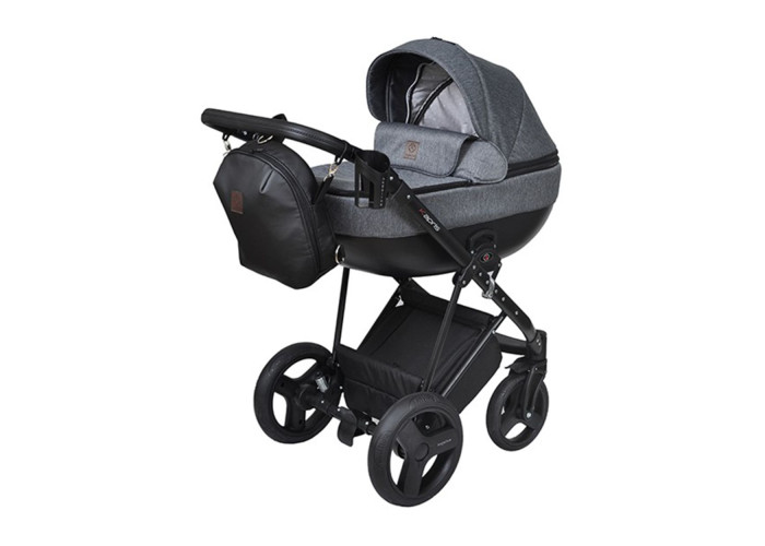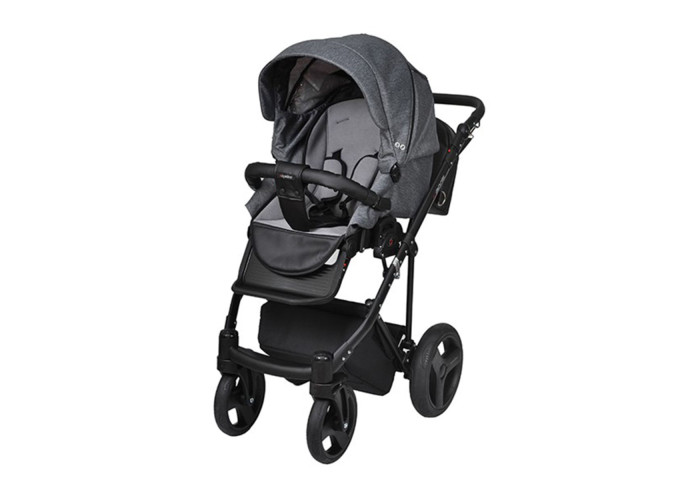 - Цельнолитая просторная пластиковая коляска, обшитая высококачественной тканью;