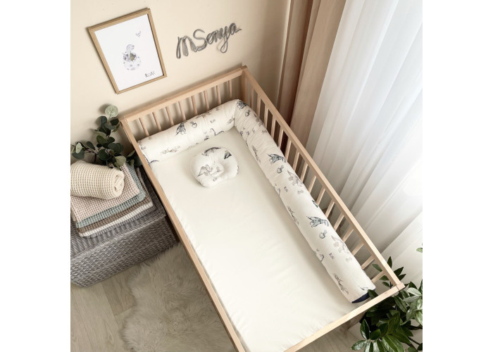 Бортик-валик із сатину - красивий, незвичайний, м'який, приємний на дотик захист, не обмежує доступ повітря в ліжечко, зручний, не займає багато місця. Коли малюк підростає, незамінний для ігор і для декору дитячої кімнати. До народження малюка, можна використовувати, як зручну подушку для вагітної мами. Чохол валика знімний для зручного прання.