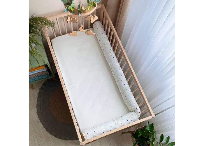 Бортик-валик из сатина - красивая, необычная, мягкая, приятная на ощупь защита, не ограничивает доступ воздуха в кроватку, удобна, не занимает много места. Когда ребенок подрастает, незаменим для игр и для декора детской комнаты. До рождения малыша, можно использовать, как удобную подушку для беременной мамы. Чехол валика съемный для удобной стирки.