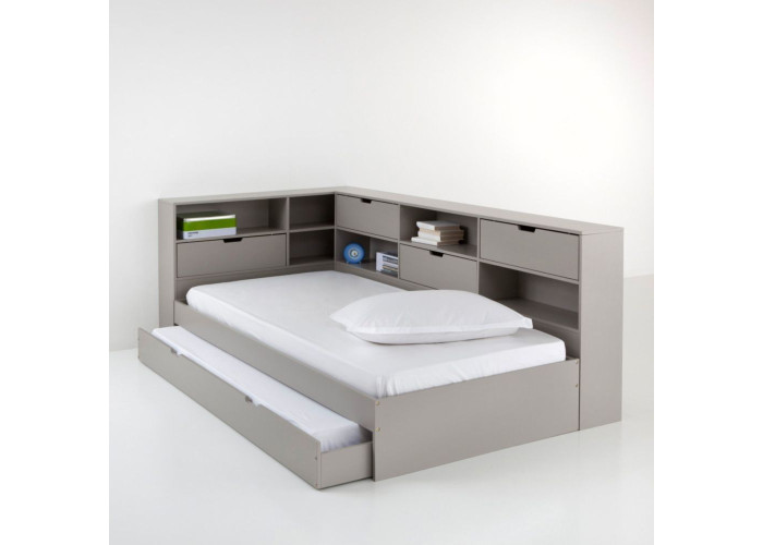 Выкатная кровать для двоих детей с полочками «Угловая»