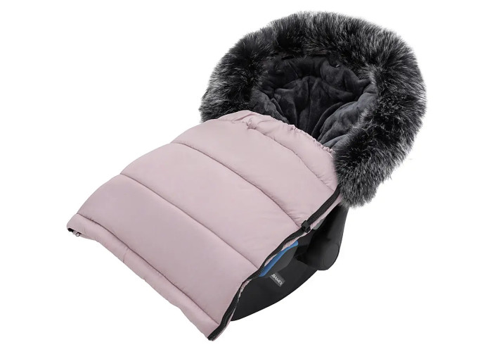 Капюшон конверта стягивается в капюшон и обработан милой меховой опушкой (при необходимости ее можно снять).