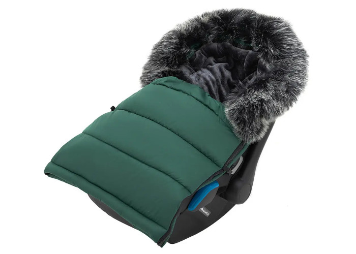 Капюшон конверта стягивается в капюшон и обработан милой меховой опушкой (при необходимости ее можно снять).