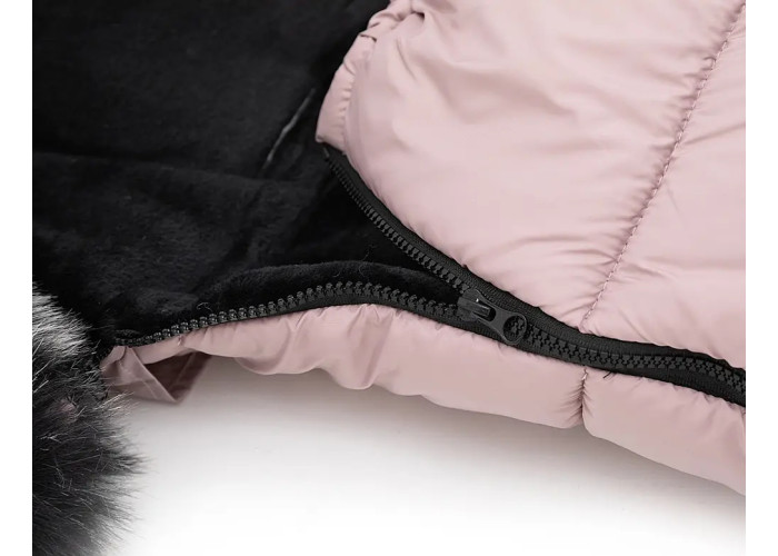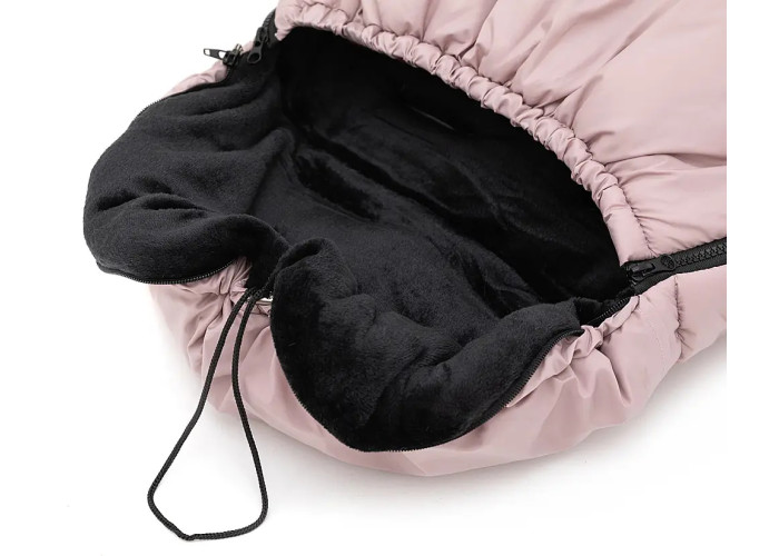 Верхняя часть декорирована съемным, мягким, высококачественным мехом. Сверху конверт можно стянуть в капюшон с помощью специального шнурка, плотно укутывающего голову ребенка для дополнительного комфорта и тепла.