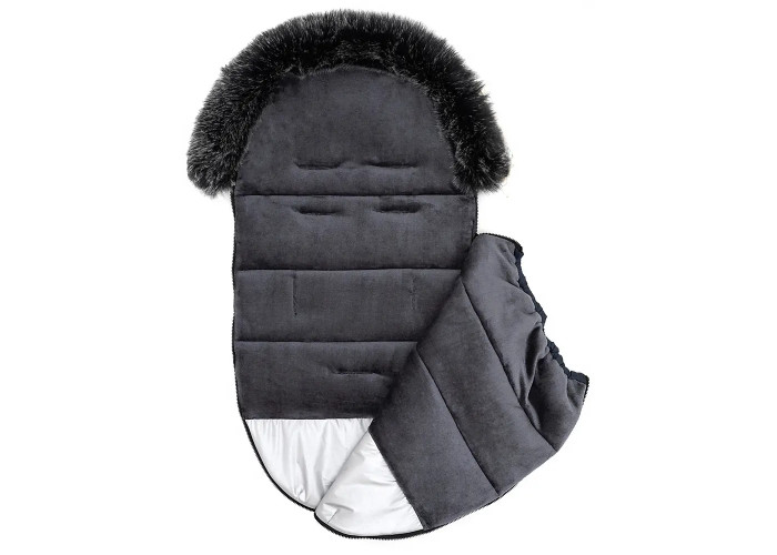 Верхняя часть декорирована съемным, мягким, высококачественным мехом. Сверху конверт можно стянуть в капюшон с помощью специального шнурка, плотно укутывающего голову ребенка для дополнительного комфорта и тепла.